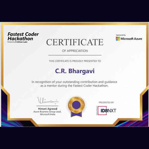 C. R. Bhargavi is an excellent resource to work with. She picked up Robotic Process Automation quickly, despite being a fresher in the year 2018. She contributed significantly to projects as complex as releasing funds electronically through automation. Her dedication towards learning and updating emerging technologies including Microsoft products definitely deserves appreciation.